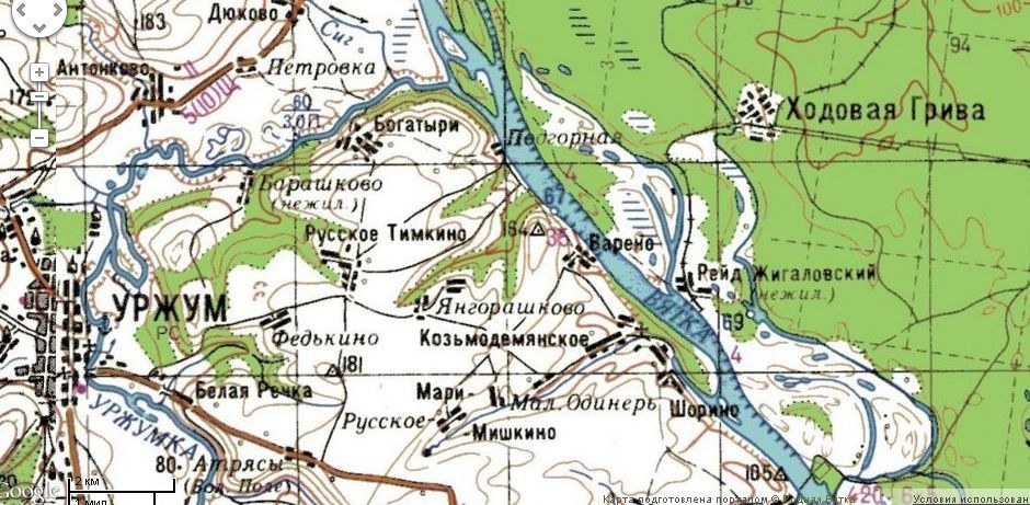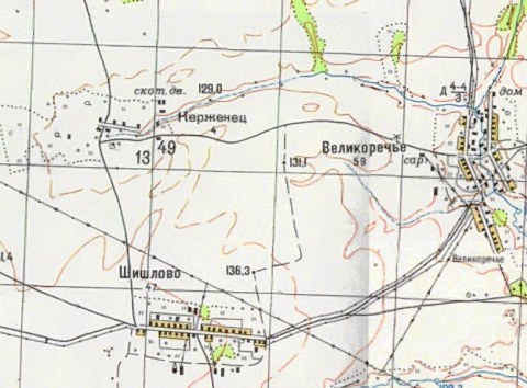 Мигриево Раменье на карте 1963 года. 1 см = 1 км