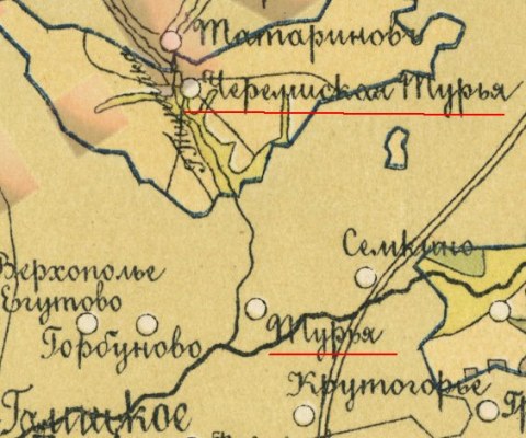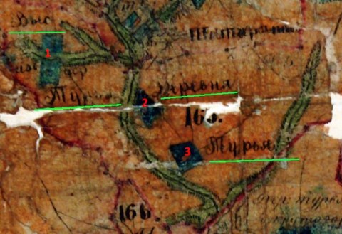 1790 год (1 - Турейка, 2 - Черемиская Турья, 3 - Русская Турья)