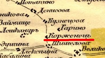 Кабалино, Алексеиха, Дурандино и Кирино на карте 1885 г.
