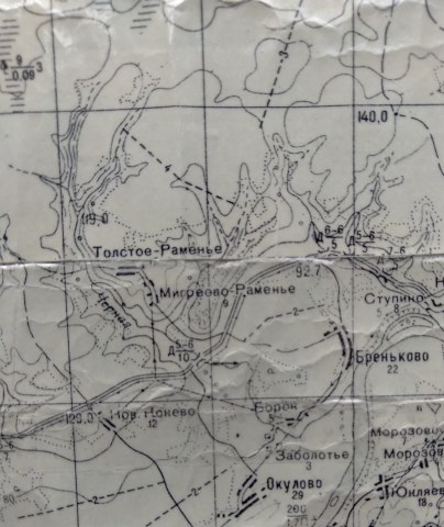 Толстое Раменье и Мигриево Раменье на карте 1963 года. 1 см = 1 км.