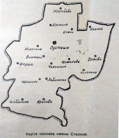 Колхоз имени Сталина(в будущем колхоз Россия) Пустошенский сельский совет Карта колхоза на 1960 год