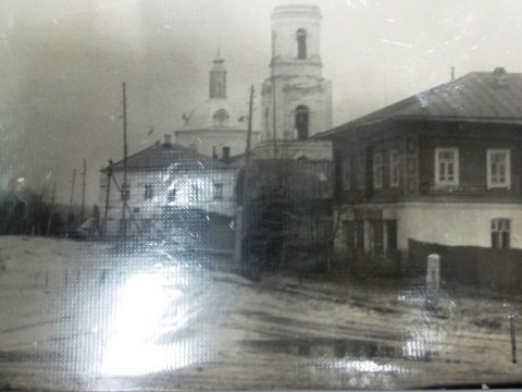 Село Верхосунье Сунского района. Церковь Казанской Божьей Матери. Фото середины XX века