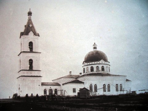 Строительство церкви 1884 г. Это фотокопия фотографии, которая находилась при входе в церковь и была там вплоть до закрытия церкви в 1965 году.