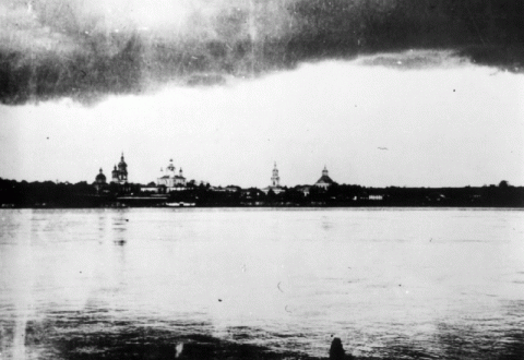Пристань у Спасской церкви. На горизонте Благовещенская церковь