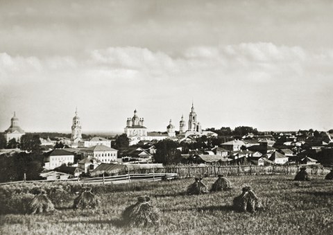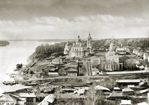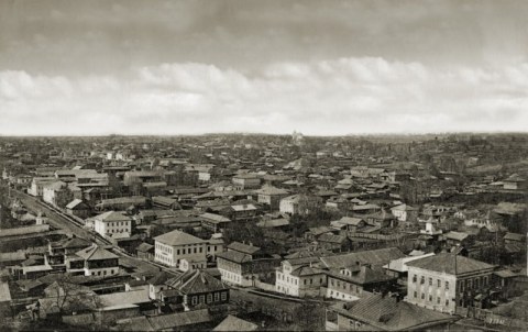Вид на город с колокольни Благовещенской церкви: слева - Казанско-Богородицкий собор, справа - Спасо-Орловский монастырь