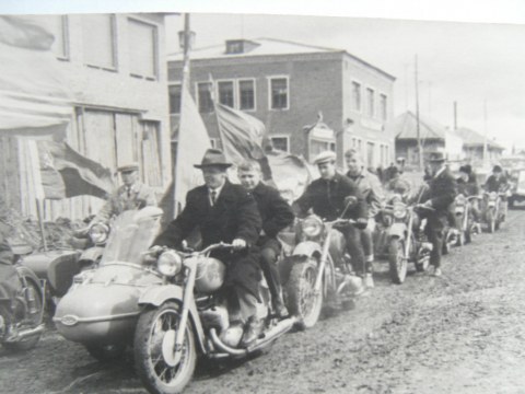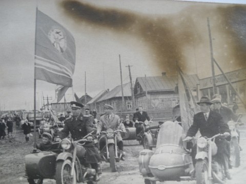 Фото. Зыкин Георгий Данилович - директор школы на первомайской демонстрации в п. Кумены 1950 г.