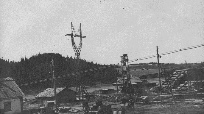 Фото из архива домостроительного комбината. Рейд - место приемки, хранения и сортировки пиловочника. За ним - река Вятка, безлесый правый берег, "глубокий лог"