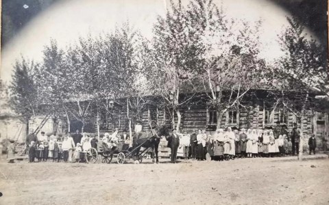 Жители деревни Чекашево в нач.ХХ века. На переднем плане - семья Ямашевых (деревенское прозвище - Макаровы). Дом стоял на перекрестке (ныне - улиц Советская и Школьная).