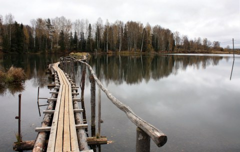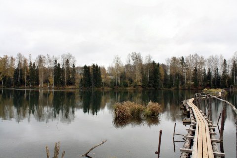 Филейка, переходы через реку Суну, вид на бывшую деревню Котёнки, осень. Фот. Е. Нелюбина