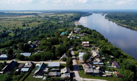 Сверху поселок напоминает диковинную рыбу из сказки... Июнь 2022 г. Фото Д.Козак