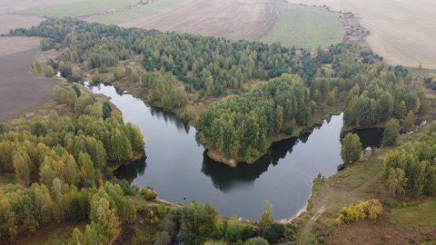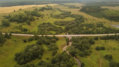 Вид сверху на холм, на котором раньше стояла деревня. Август 2022 года. Фото Д.Козак