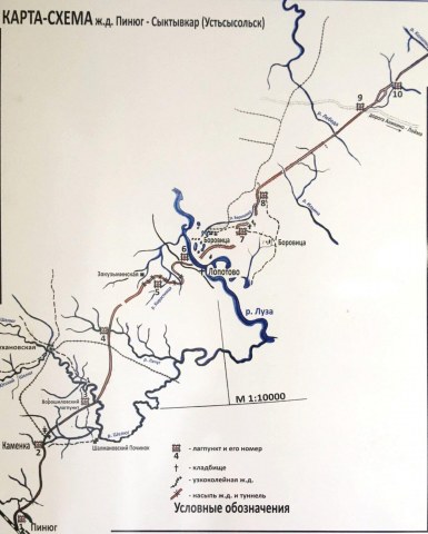 Оригинал данной схемы находится в краеведческом музее Подосиновского района. На схеме лесоучасток (Филинская) Боровица расположен на правом берегу одноимённой речки, с правой стороны, строящейся ж/д дороги Пинюг - Сыктывкар.