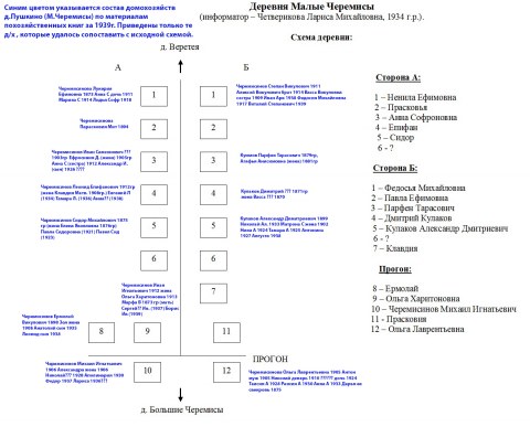 Схема деревни М.Черемисы, с данными по похоз.книги 1939г.