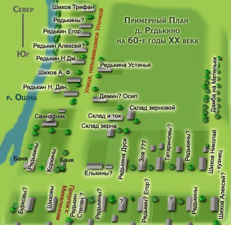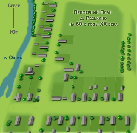 Примерный план деревни Редькино на 60-е годы 20 века.