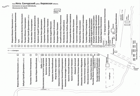 Схема села Ихта на 1950-60 г.г. от Николая Масленникова