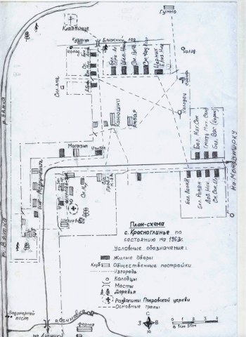 Схема с. Красноглинье 1963 год. Составил Черных М.П.