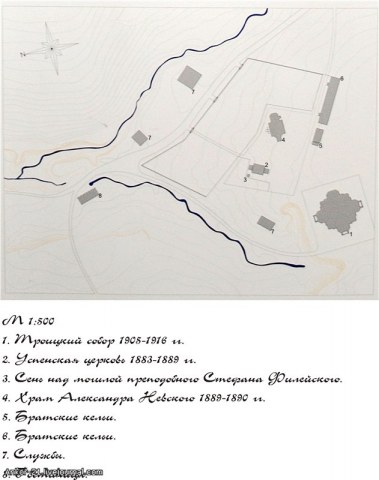 Схема села по воспоминаниям Деминой Любови Михайловны. Из работы учеников 11 класса средней школы г. Кирс "Село Екатерина"