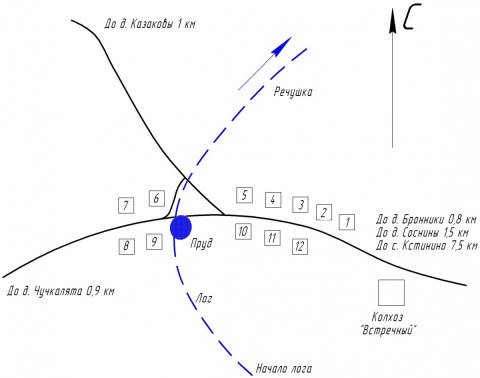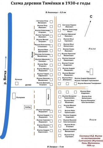 Схема дер. Хмелевка на 1950-е гг. Составил Алексей Агафонов