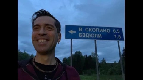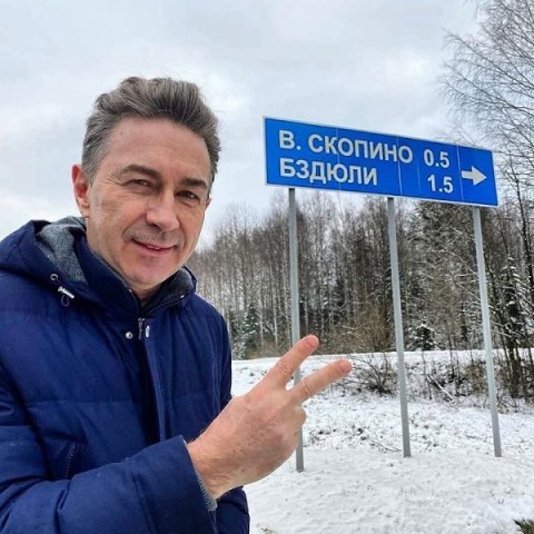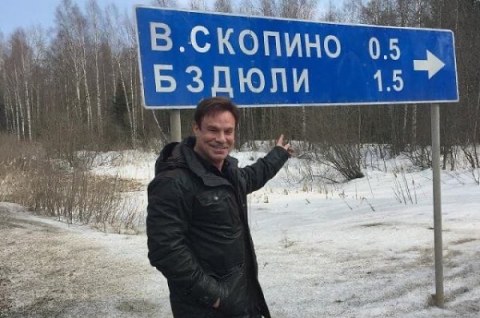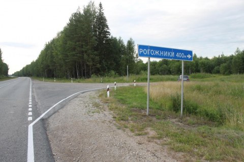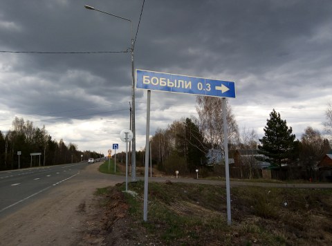 Дорожный знак с названием деревни перед въездом в населенный пункт, 16.09.2023 г.