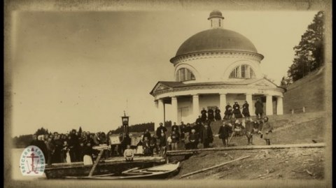 Строительство церкви 1884 г. Это фотокопия фотографии, которая находилась при входе в церковь и была там вплоть до закрытия церкви в 1965 году.