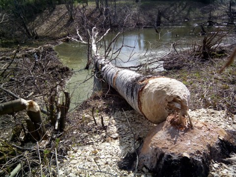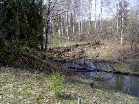 Хорошая работа бобров, построили целый каскад плотин рядом с местом, где была деревня Глинное (май, 2014 г.). Автор фото Иван Зыков.