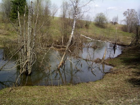 Речушка рядом с местом, где была деревня Глинное (май, 2014). Автор фото Иван Зыков.