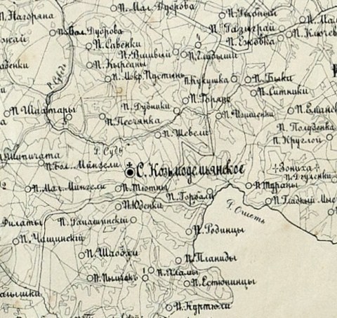 фото 2013 года, от деревни остались лишь деревья не свойственные для окружающих лесов.