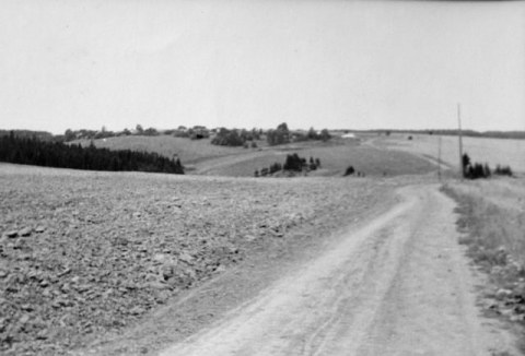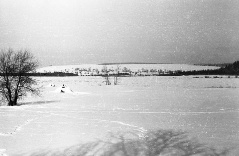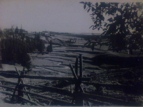 Старое фото. Вдали деревня.