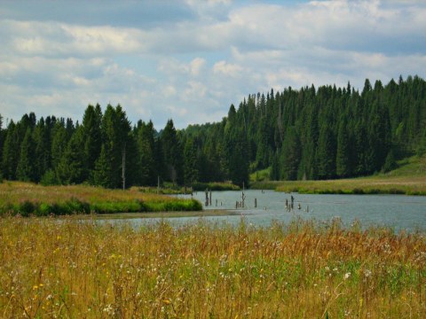 ныне не существует Вдали- Нижние Ряби и Шиляи на левом берегу Суны. Фото с правого берега реки.