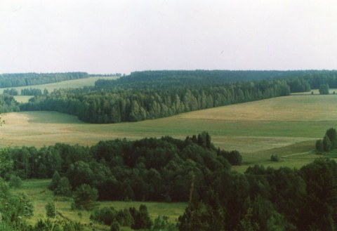Вдали-Нижние Ряби и Шиляи на левом берегу р.Суны. Фото сделано с правого берега реки.