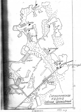 Границы совхоза (сха) Урожайный с августа 1965г. по февраль 2008г. Д.Городище центр хозяйства.