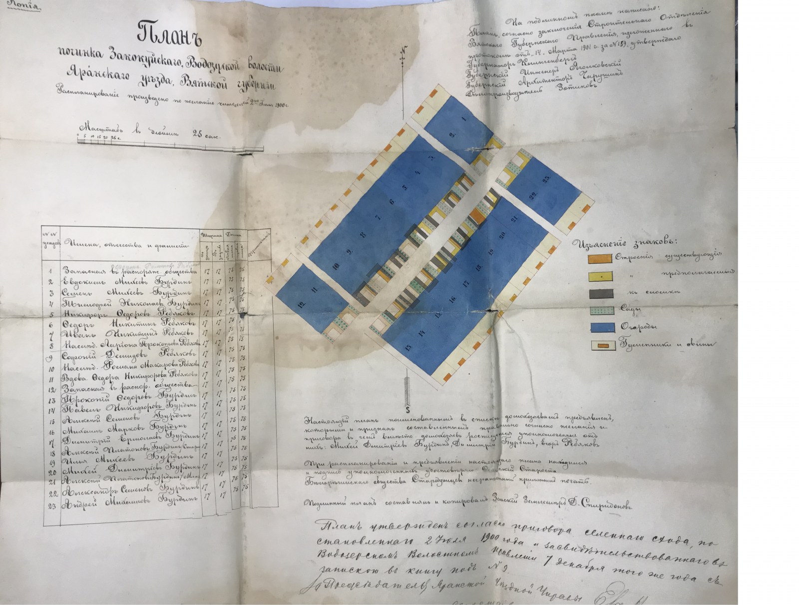 Ссылка на фото плана деревни от 27 июля 1900 г. Составил земский землемер Д. Спиридонов. Информация о 23 дворах и их собственниках (к сожалению, так и не понял как прикрепить в фото в основной информации)