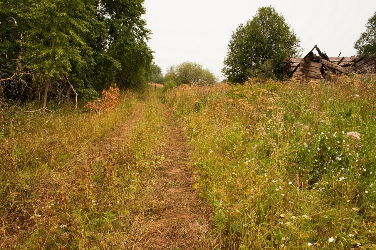 Дорога по деревне, северная часть деревни, вид на юг. Фот Лысов Д.С. 21.07.14