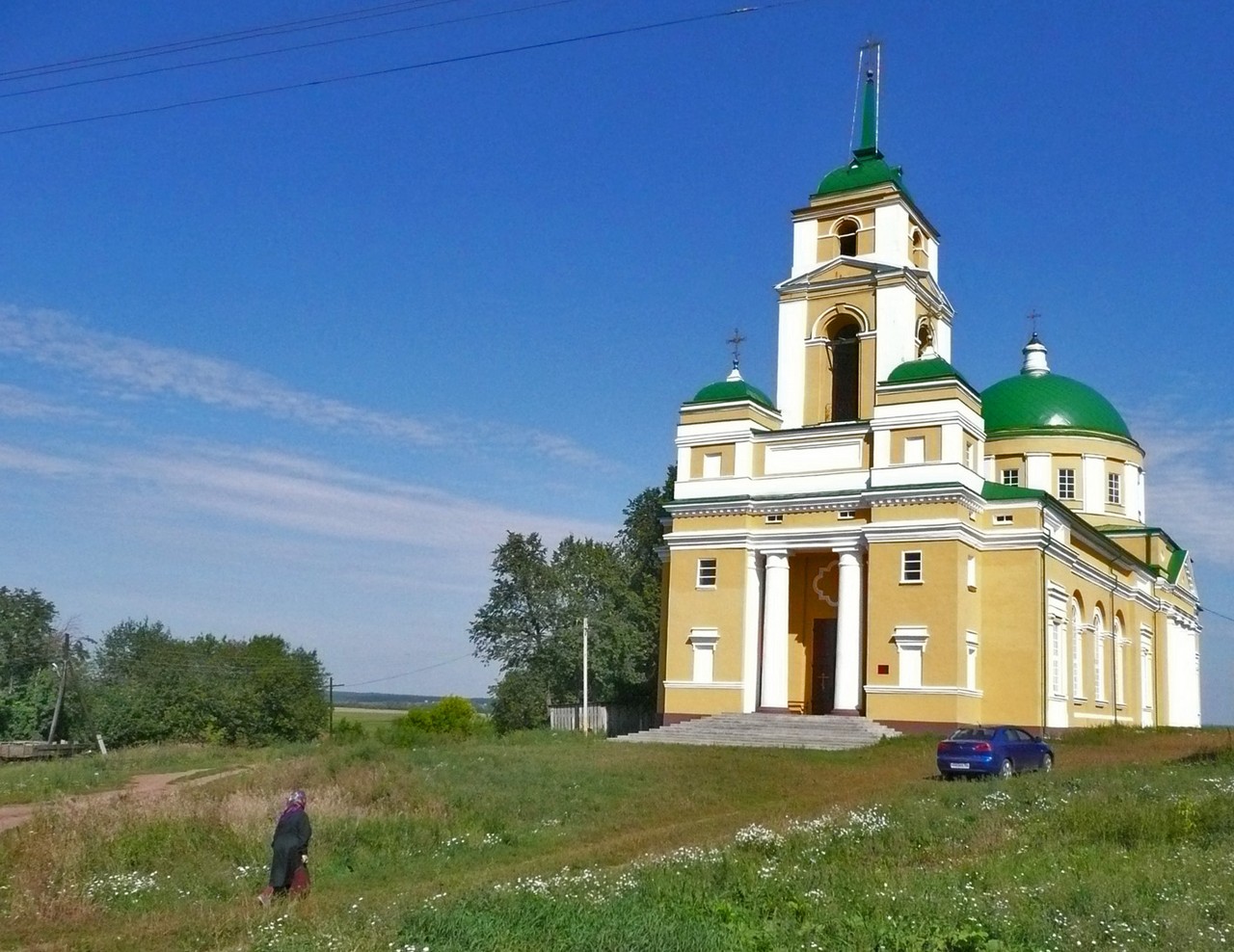 Новая (третья) каменная церковь была построена в 1814 г. на средства прихожан с тремя престолами: в холодной церкви – главный – освящен 28 мая 1846 г. во имя Преображения Господня, в теплой церкви – правый – освящен 18 января 1821 г. во имя Казанской иконы Божьей Матери, левый – освящен 17 января 1835 г. в честь Св. Афанасия и Кирилла Александрийских.