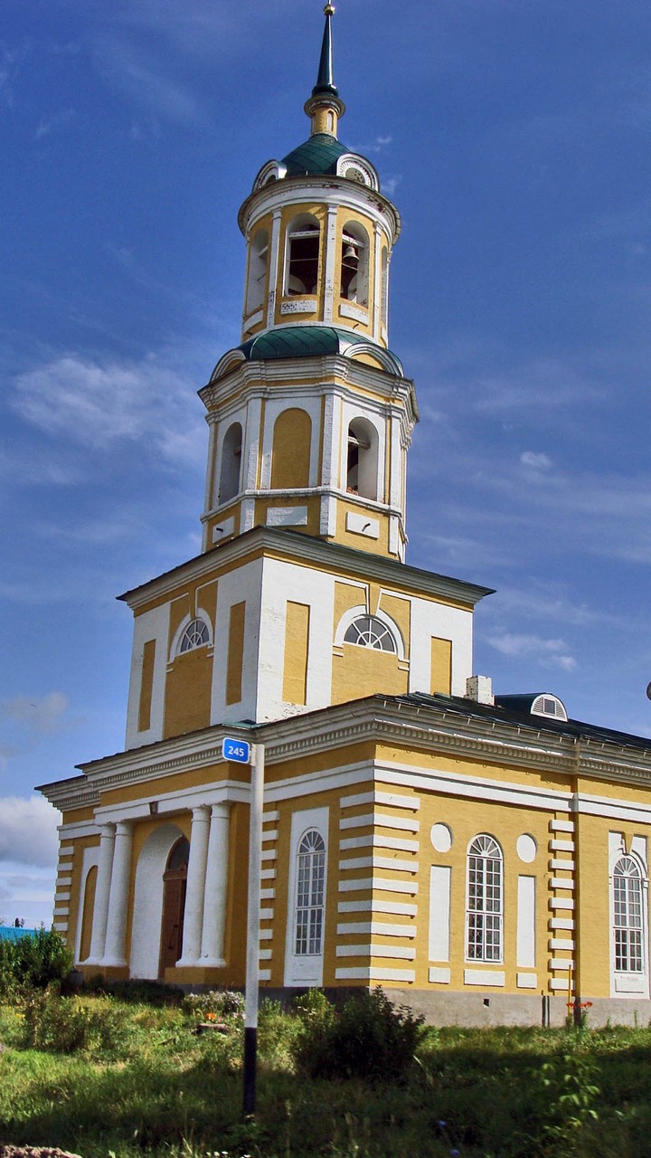 3 июня 1819 г. Вятской духовной консисторией выдана храмозданная грамота № 2031 на строительство нового каменного храма с приделом. Церковь строилась с 1819 по 1829 гг. на средства прихожан с тремя престолами: главный – во имя Вознесения Господня, освящен 11 октября 1848 г., второй – в честь Св. Преподобных отцов Зосимы и Савватия, Соловецких Чудотворцев, освящен 16 сентября 1829 г., третий – в честь Сретения Господня, освящен 10 ноября 1858 г.