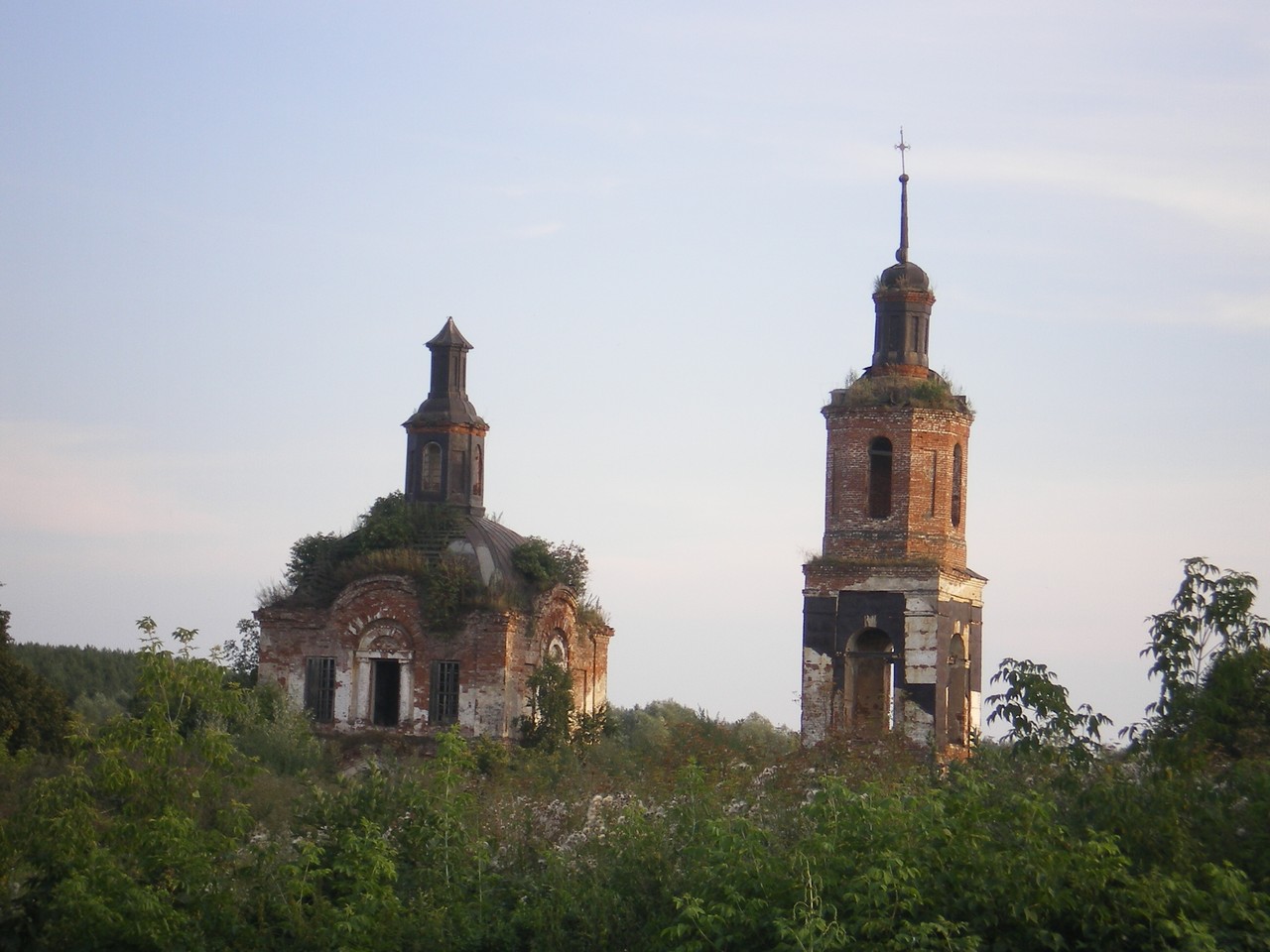 Первая церковь была построена в 1700–1706 гг. во имя Св. Великомученицы Екатерины. Церковь эту сожгли “язычники черемисы”. Вместо нее вновь была выстроена другая Екатерининская церковь, которая также была сожжена язычниками. Третью вновь построенную деревянную церковь (1786 г. – освящена) сжег “самозванец-разбойник Айданко”.