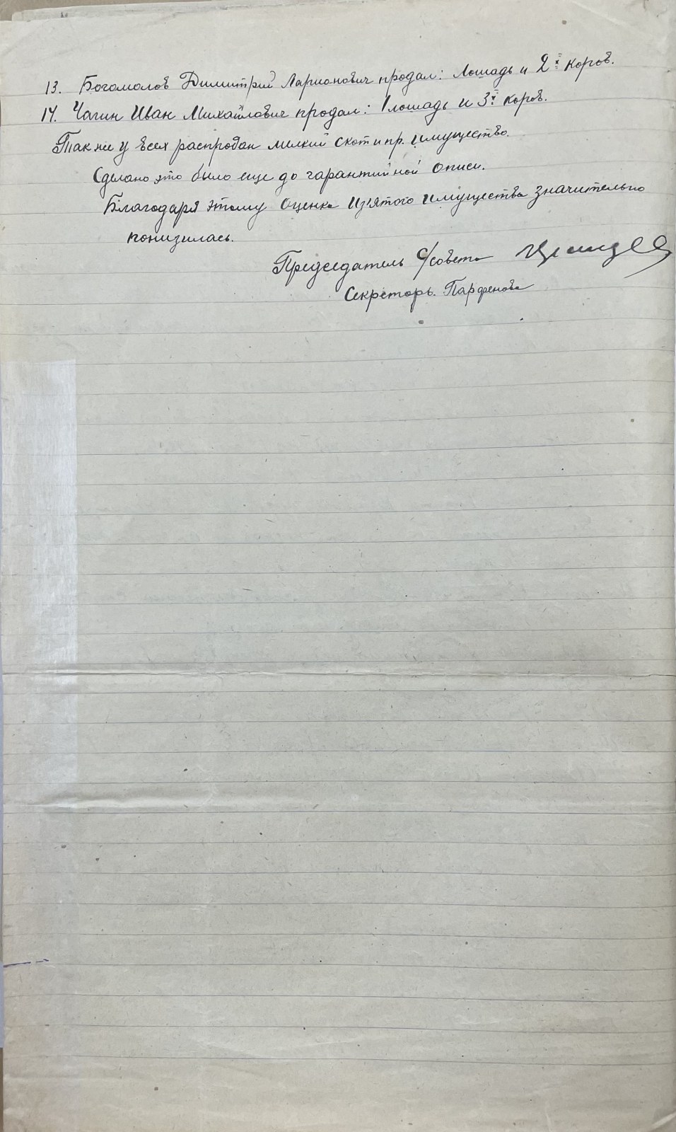 В деревне, в указанный период, был лишь один пчелиный улей – у Светлакова Николая Васильевича ~1871 г.р. У него также у единственного был плодовый сад из 15 деревьев.