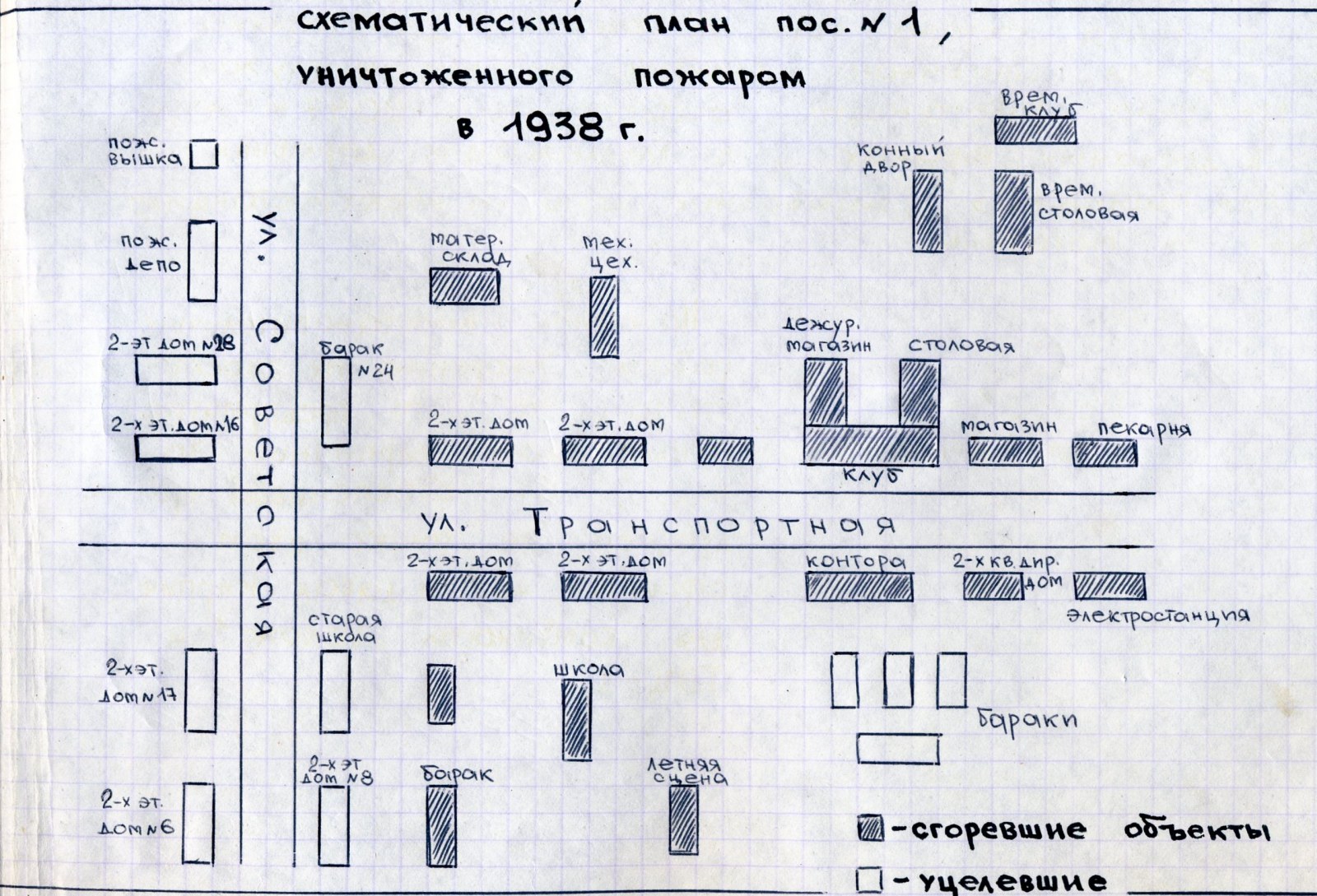 План поселка Торфяной после пожара 1938 года. Фото из группы VK https://vk.com/club93263072 (Оричи-Краевед)