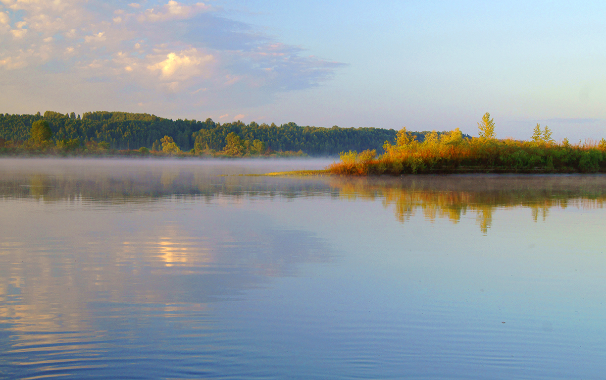 Вид с Вятки. На местности найти следы существования пристани найти не удалось.