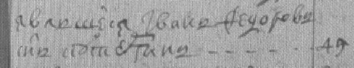 Долго гадал, но так и не пришёл к выводу. "Ослепший" здесь не подходит. Первая буква "Я". Выше в этом же столбце: "МартемьЯн", "ЕремеЯ", "Явил сына Никифора 3". Во втором столбце внизу, вероятно, то же слово, только в середине "ъ" или "ь": "Я...ше Исак Марков сын Пантюхин 25". Может быть, это сокращённо: "явившейся"? Но третья буква, скорее всего, "л".
