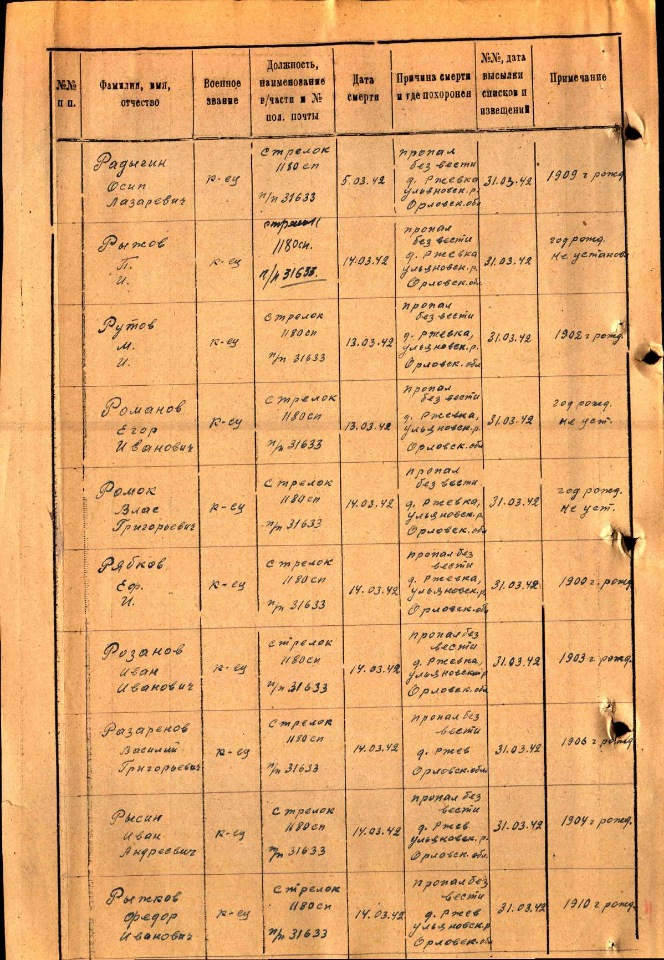 Возможно, именно он мог Вам что-либо рассказать о судьбе Радыгина Осипа Лазаревича.