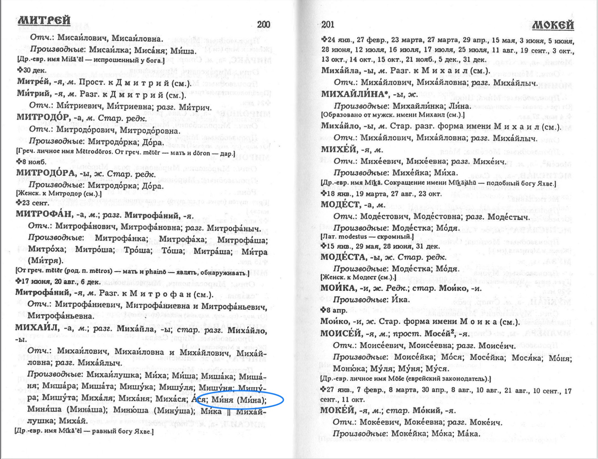 Книга «Словарь русских личных имен (более 3000 имён)», Н.А.Петровский 1996 год.
