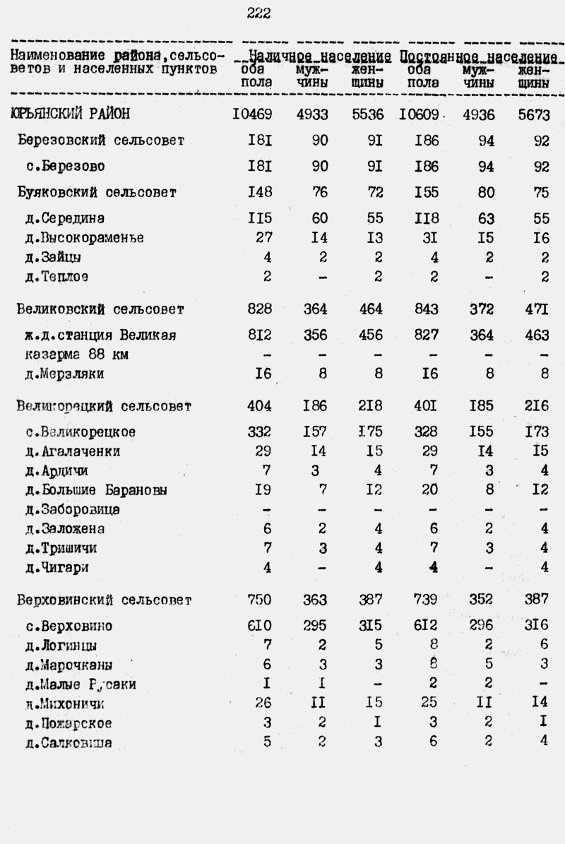 | | Великовский сельсовет | 364 | 464 | 828 | 372 | 471 | 843 | | 1, с. 222 |  |